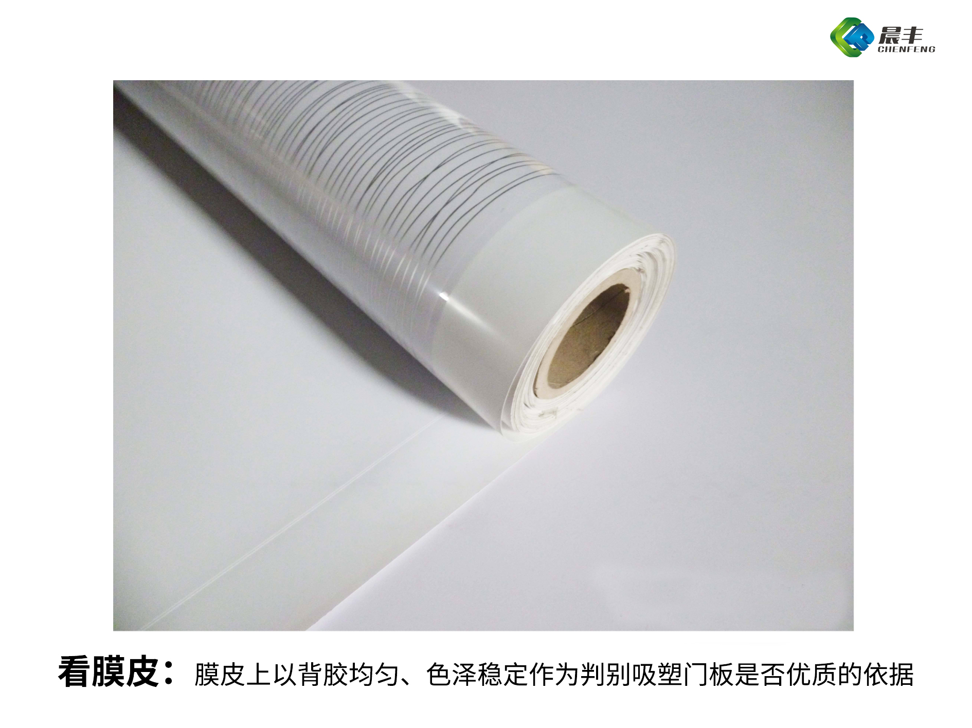 (2)膜皮上以背胶均匀、色泽稳定作为判别吸塑门板是否优质的依据。