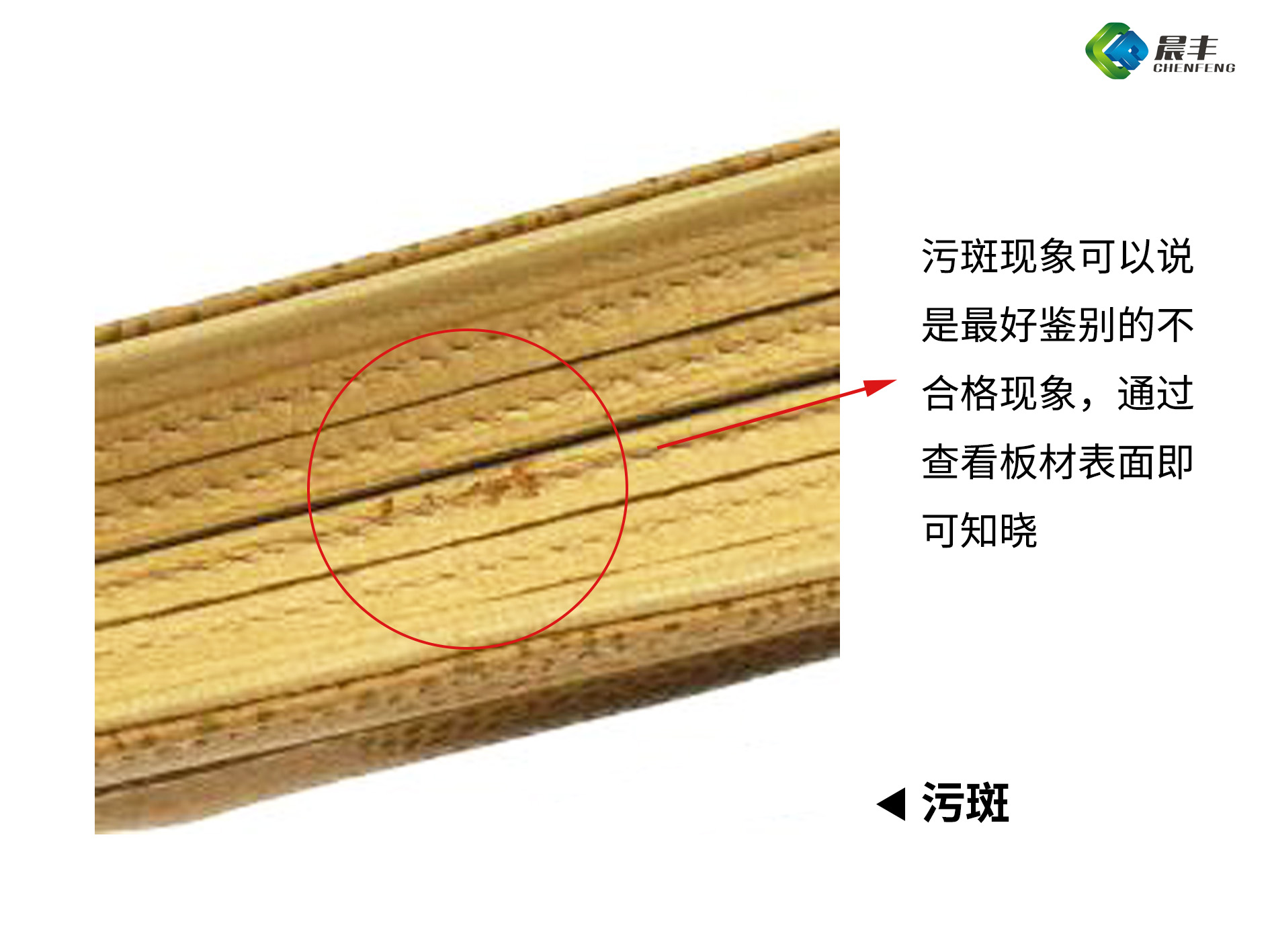 污斑现象可以说是最好鉴别的不合格现象,通过查看板材表面即可知晓。这个也常见于板材的油漆表面,主要影响板材自身的美观度。