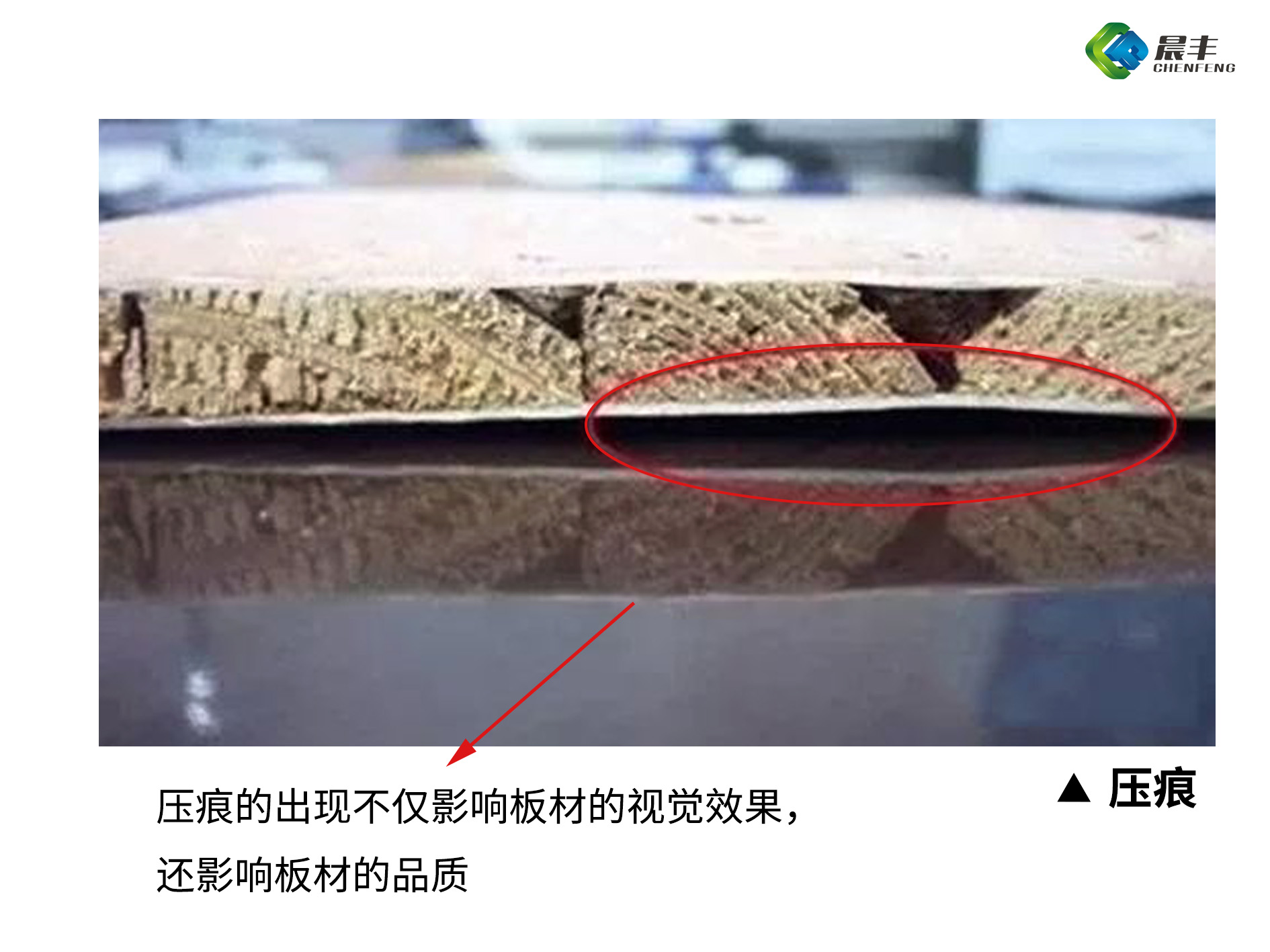 压痕现象,一般是由于板材被重物重击导致的,压痕的出现不仅影响板材的视觉效果,还影响板材的品质,板材在使用时会在一定程度上加重裂痕,进而缩短使用寿命。