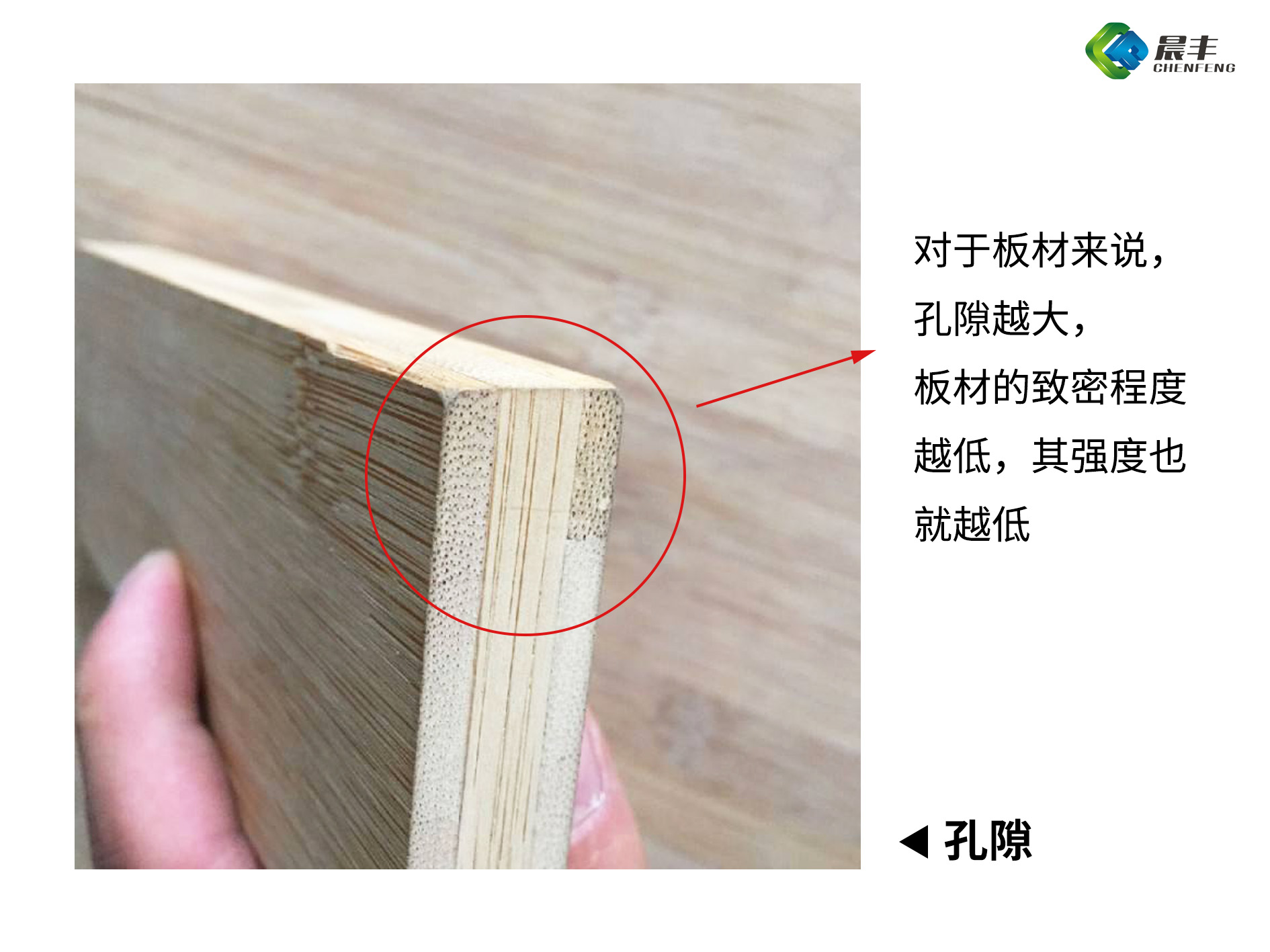 孔隙与空隙有所不同,一般是指板材内部材料由于水分等原因形成的部分气体结构,对于板材来说,孔隙越大,板材的致密程度越低,其强度也就越低。